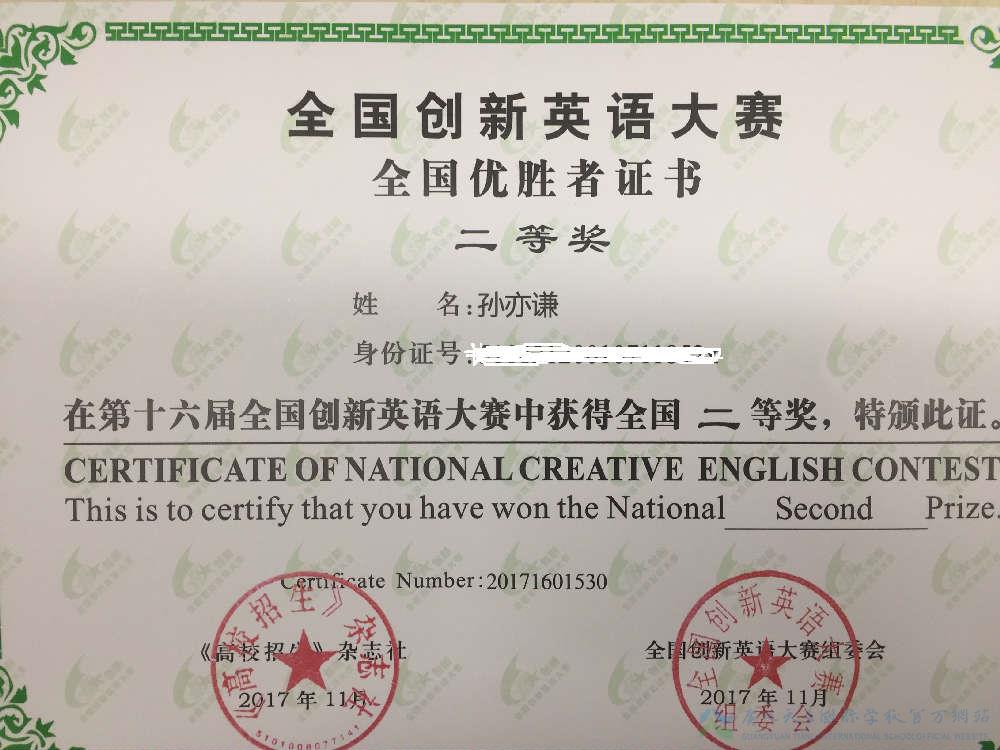 据悉,全国创新英语大赛(National Creative English Contest)自2001年起开始举办,由教育部高校学生司指导、中国高校招生研究会主办的《高校招生》杂志社与北京大学、清华大学、北京师范大学等76所名牌高校联合举办。该赛事始终秉承“推进素质教育,培养创新人才,逐步改变以高考分数为惟一选才标准的模式,探索多元选拔优秀人才的机制,为在英语方面学有专长的同学提供向高校展示自己才能机会”的宗旨,为在英语方面学有专长的学生提供了全面展示自我的平台,极大地锻炼了学生的英语实际应用能力,提高了学生的创新和随机反应能力,加强了学生与人交流的能力,让学生学以致用,摘掉了“哑巴英语”的帽子。