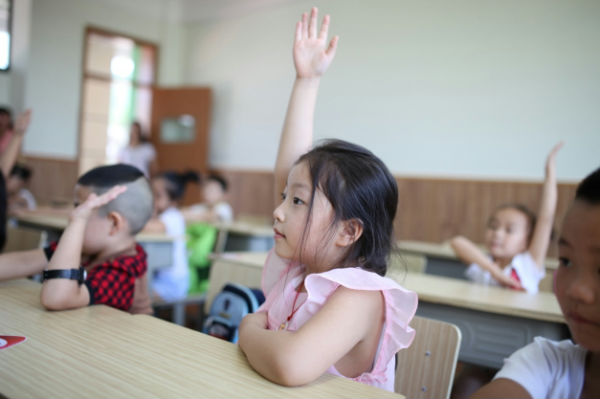 艳阳高照,万里无云,一座美丽的英伦建筑镶嵌在群山之间。湖面微澜,睡莲怒绽,天鹅悠然。7月25日上午,广元天立国际学校“幼升小”衔接班在新校区正式开班,70余名小朋友在家长的陪同下步入童话般的天立校园,提前体验轻松有趣的天立小学生活。