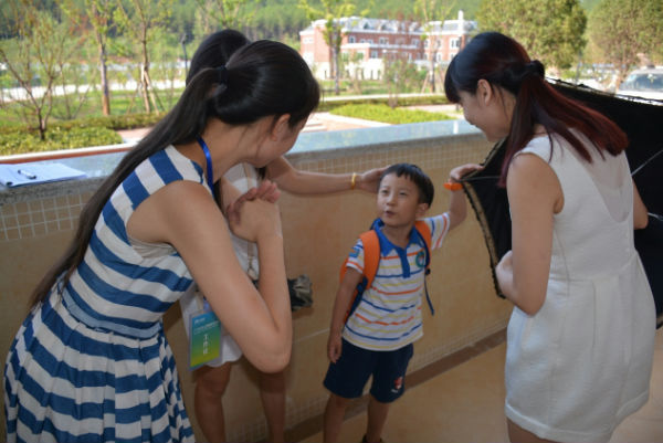 小家伙,和老师说再见