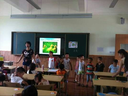 接着庞冬梅老师也从故事开始,学会一首经典的儿童诗《小老鼠上灯台》。庞老师的故事很精彩,孩子们背诵表演得很投入。接下来是数学课,主题是数字城堡。学习1-10,10-1的数数,王婷婷老师和我还带孩子到教室外跳房子,从1-10。接下来是优雅的舞蹈庞老师带孩子们做韵律操,在一旁听课的助教、老师都随着音乐快乐地跳起了韵律操。