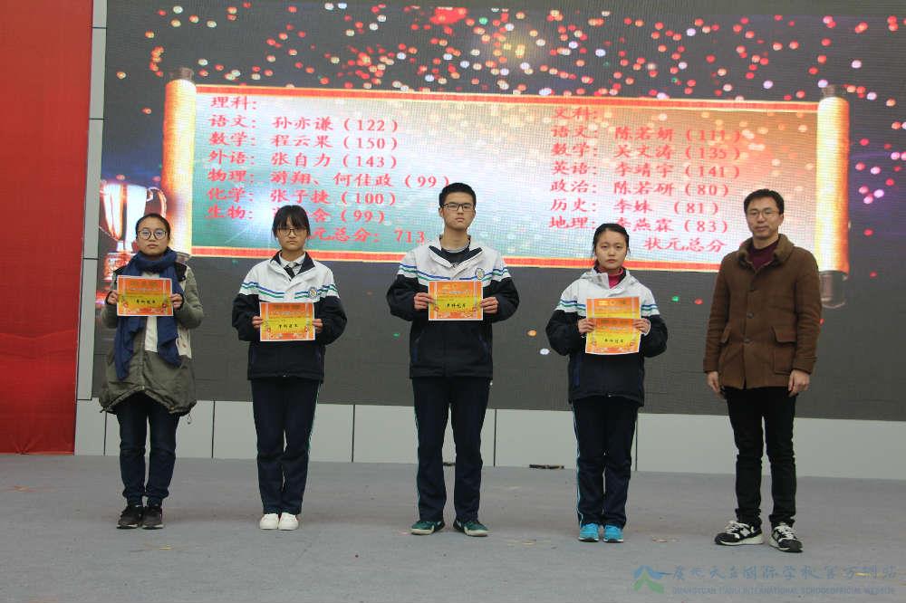 过去的一学期,高二年级在韩顶清校长的直接领导下,扎实稳进,终以理科摘得状元,前十占五,前五十占二十,文科前十占二,前五十占八的辉煌战绩荣耀在丁酉岁末。为了鼓舞先进,学部隆重表彰了本学期在生活、学习等方面纷纷取得傲人成绩的同学,主要涉及“特长之星”、“优秀班干部”、“优秀学习小组”、“进步之星”、“状元之星”等等,让在场师生及家长共同见证了他们的荣誉。