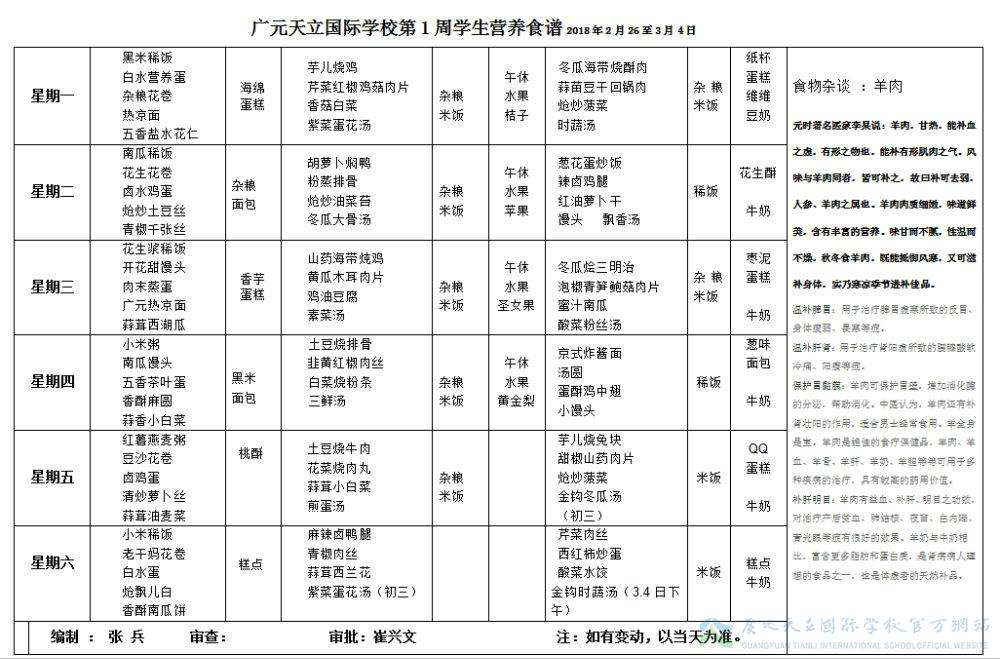 2018年春第一周食谱