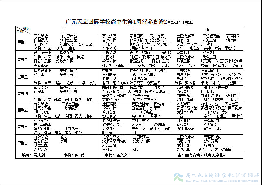 膳食中心第1周营养食谱