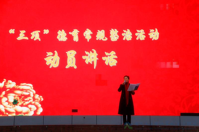 薛书记指出,我国是世界文明的发祥地之一,被誉为礼仪之邦,这曾令无数炎黄子孙为之骄傲、自豪。十九大报告明确指出:到2050年,要把我国建设成为富强、民主、文明、和谐、美丽的社会主义现代化强国。这里的“美丽中国”就是指在加强生态文明建设的同时,加强精神文明建设。其中,生态文明建设,做到山清水秀,空气清新,环境优美;精神文明建设,就是要改变国民的精神面貌,做到彬彬有礼,遵纪守法,明礼诚信,谈吐文雅,举止庄重,形象优美。为提升全校学生文明素质,从今天起,全校小、初、高联动整治“三项”德育常规:第一,不乱吐乱丢,不乱写乱画;第二,见到老师、同学、来宾,主动问好;第三,不说脏话,不追逐疯打。希望大家互帮互助,讲文明习惯,树正气之风,养浩然之气,从这三项常规做起,知行合一,师生携手,共创宁静、和谐、有序、充满生机与正能量的美丽校园。