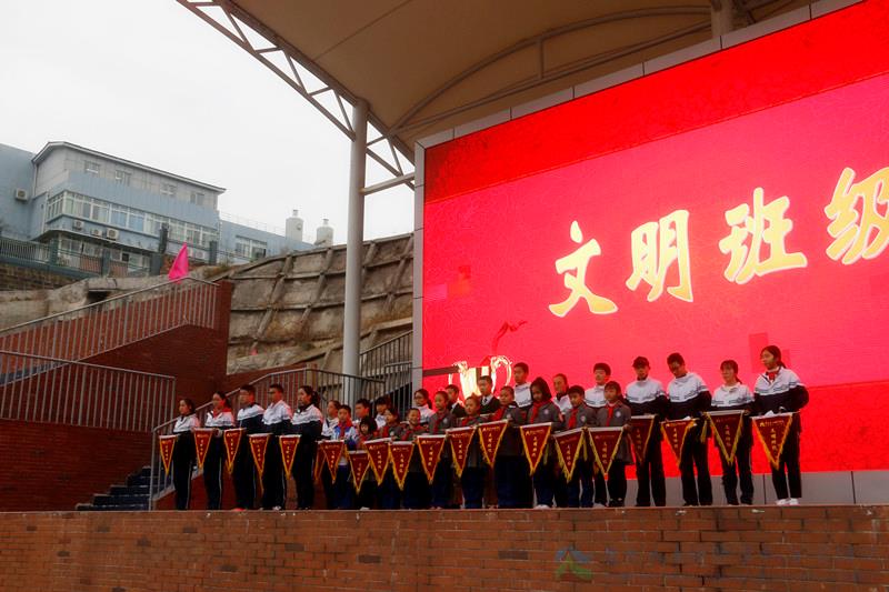 升旗仪式上,学校还对各学部上一周获得文明班级称号的班级进行了表彰。