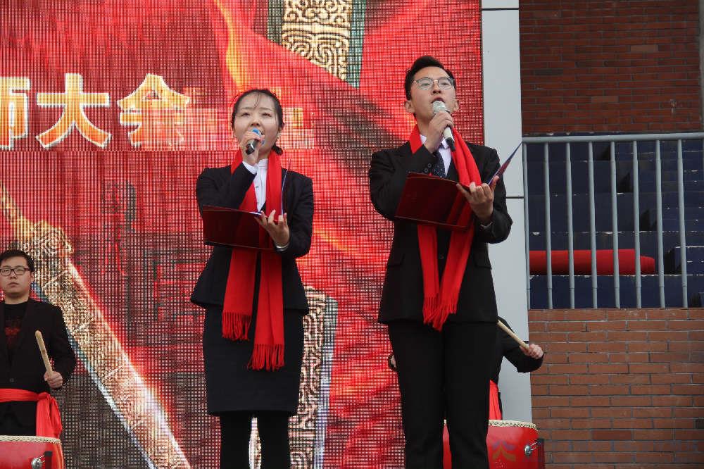100天!最后的100天!为中考而战,调动一切细胞,集中一切精力,挖掘一切潜能,冲刺、冲刺、再冲刺,以辉煌的中考成绩书写自己无悔的青春!初三各班代表和祝福方阵代表分别发表冲刺宣言和祝福宣言!