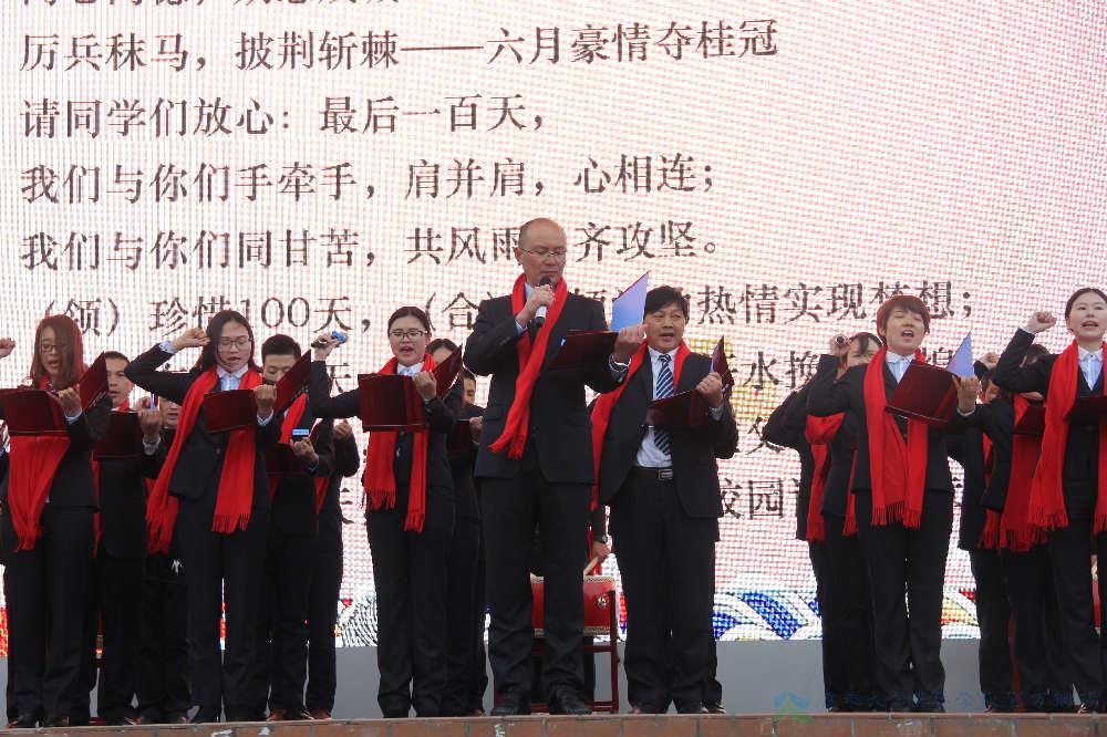 “秉承校训,不辱使命;恪尽职守,精诚协作——甘将心血化时雨。精心备考,严谨治学;精讲巧练,准确导航——育出桃李满园春……请同学们放心:最后一百天,我们与你们手牵手,肩并肩,心相连;我们与你们同甘苦,共风雨,齐攻坚。”铿锵的誓言是全体初三老师爱心、责任、汗水和智慧的浓缩,相信在老师们风雨相随的悉心指导下,初三的孩子们定能在火热的六月纵横“沙场”,光耀十方!