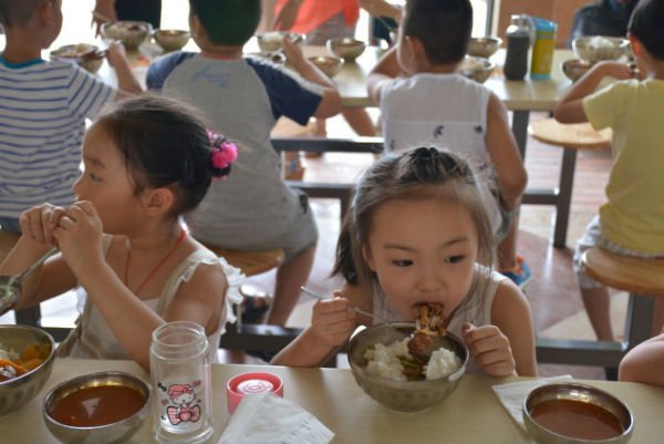 孩子们自己整理的床铺
