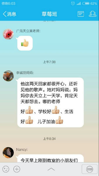 从每天一大早接孩子来到学校,到每天下午将孩子安全送到每个家长的手中,天立的老师们努力做好每一个细节。在和谐温馨的学校氛围里,每个孩子都能享受到无微不至的关怀与服务、呵护与赏识,学校处处充满笑声、读书声、歌声和欢呼声。