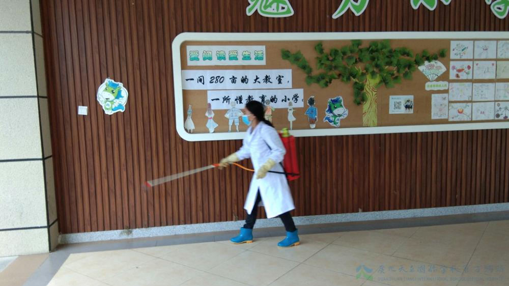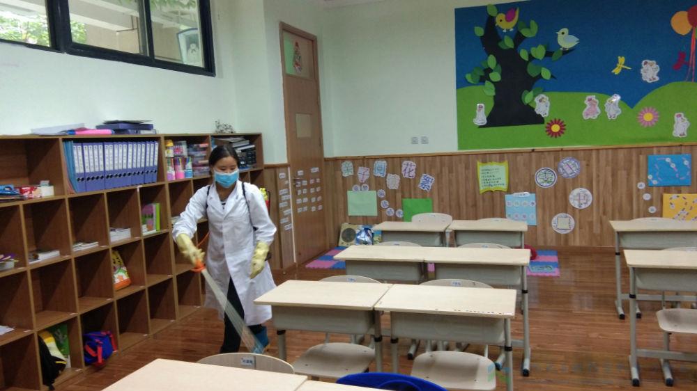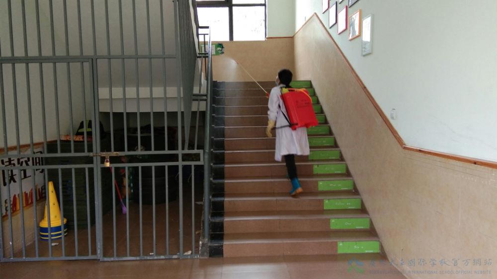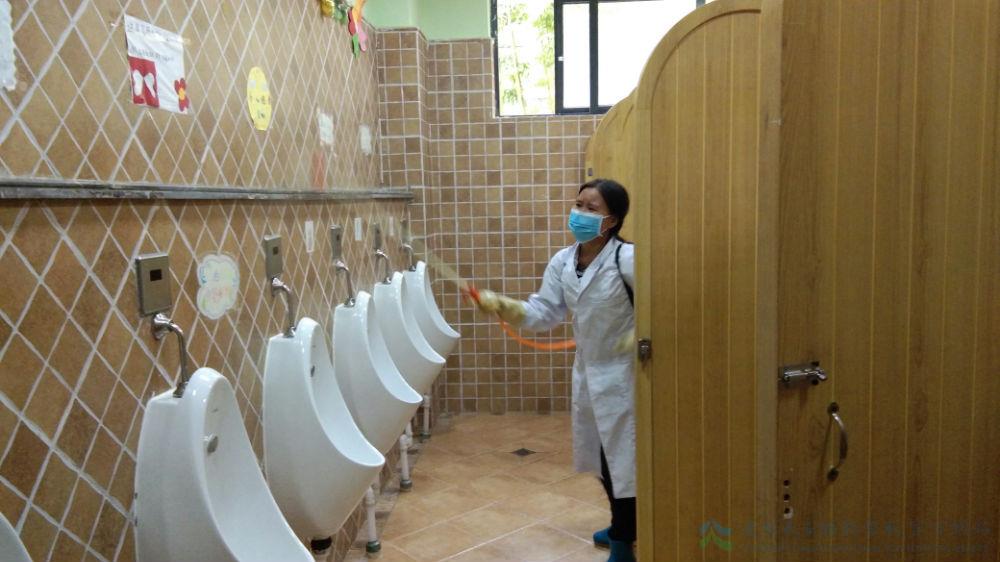秋季病菌繁殖快,食物易腐败,是胃肠传染病和虫媒传染病的多发季节,为保障我校师生在节后能拥有一个安全卫生的工作学习环境,确保学习正常的教学秩序和师生身体健康,全体生活老师、清洁组阿姨在校医室医务人员的指导下利用学生双节放假离校的时间,对校园开展了全面的清洁消毒工作。
