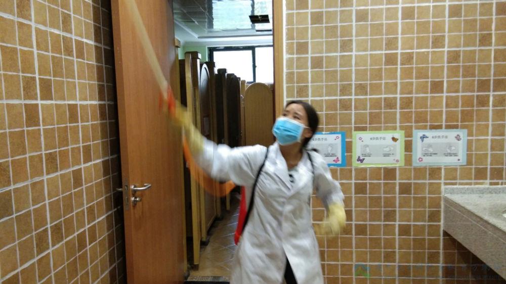 本次卫生消毒工作由学校后勤服务中心牵头,校医务室专门负责消毒剂调制与消毒指导,大家严格按照程序对所有教室、卫生间、寝室、楼梯走道、垃圾箱等进行了清洁消毒,不放掉一个死角。确保师生返校后全校的卫生安全。