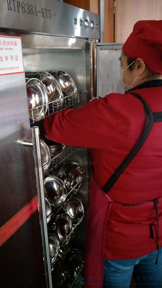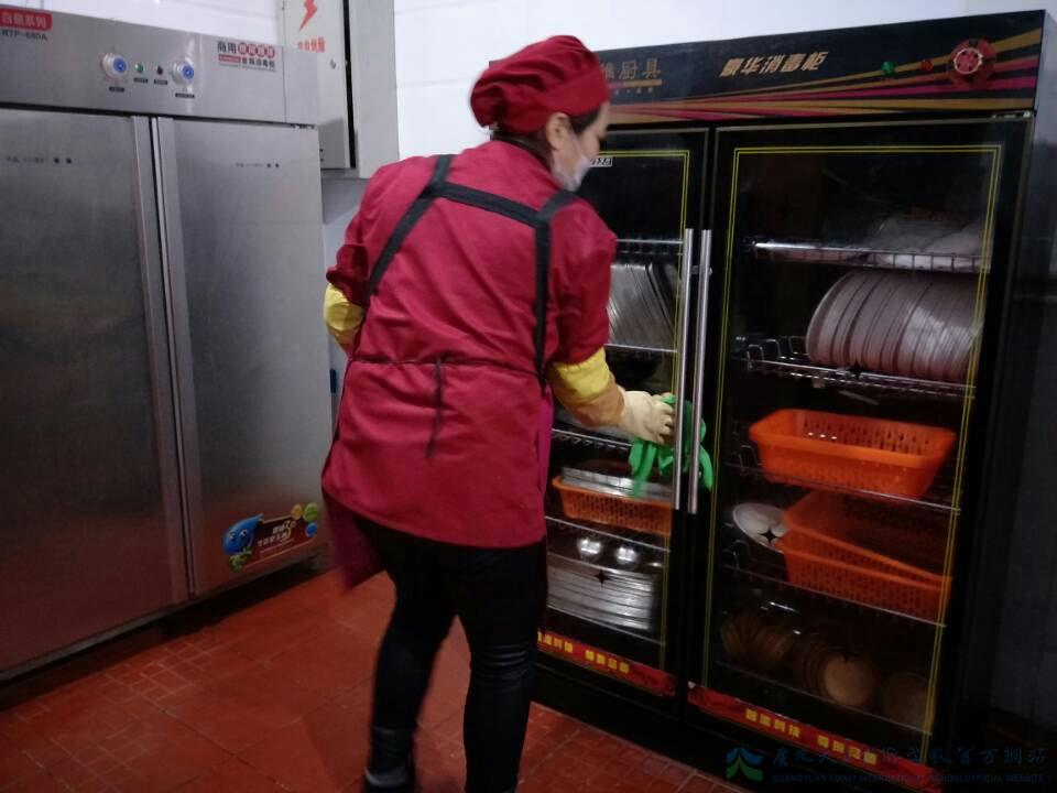①进一步加强食堂常规清洁与消毒,餐具、厨房用具使用酒精消毒,同时利用蒸柜高温消毒。