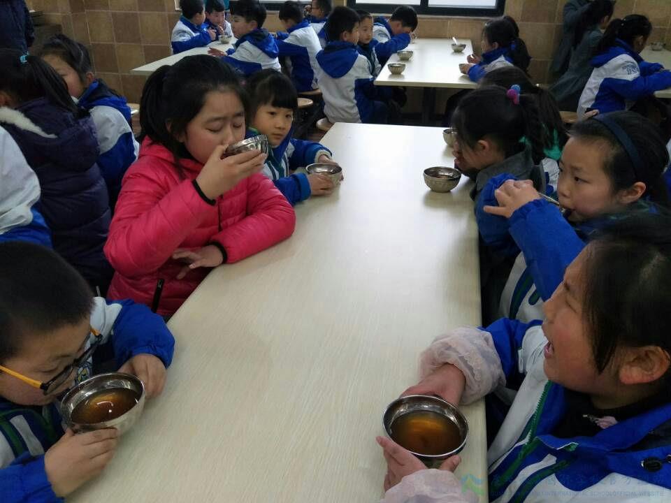 五.除了对学生的生活环境进行消毒预防以外,学校专门在中医院统一购买有针对性的中药熬给学生喝,以增强学生的抵抗力,保证学生的健康。俸校长亲自上阵哄学前班娃娃喝药,让孩子们感到无限温暖。