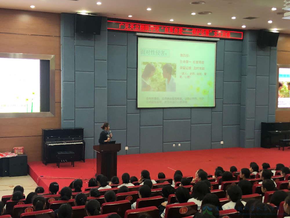 为了增强我校高中部女生的自我保护意识,提高学生对生理、心理健康的认识以及引导学生正确看待青春期懵懂的感情。我校高中部学生发展处特别策划并举行了本次以“自尊自爱——保护花蕾”为主题的德育讲座。