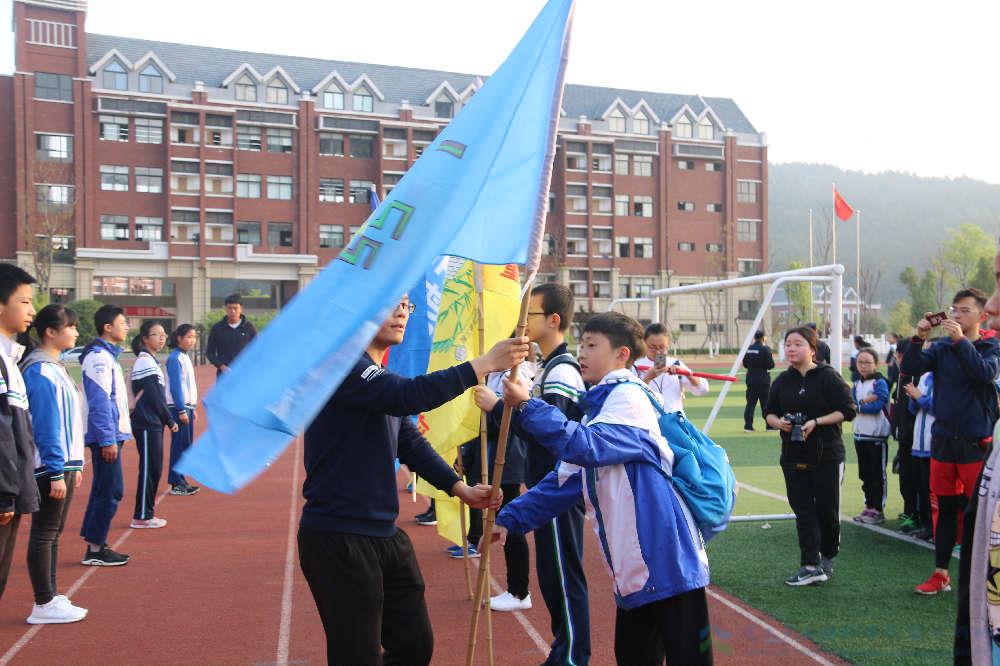 上午7:30,全体师生均带好所需物品集合完毕,出征仪式也由此时举行。仪式伊始,初中部李才校长对活动精神的慷慨宣讲点燃全场热情,对注意事项的苦口婆心使师生将纪律与安全的重要性铭记于心。紧接着全体学生在晴空旭日下庄严宣誓,承诺自觉遵守纪律,不轻言放弃。其后,随着一场简短却足够隆重的授旗仪式的完成,及一道掷地有声的出发号令响起,各班队伍开始向目的地行进。从预备年级到初二年级,三十多支队伍浩浩荡荡地走出了校园,投入无限春光。