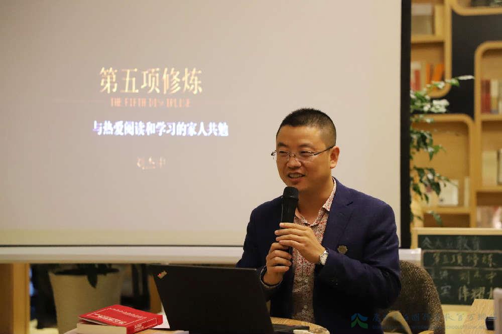 今天读书会分享的主题是《第五项修炼——学习型组织的艺术与实践》,有幸邀请到了刘杰中老师为我们分享。刘杰中老师是:国家二级心理咨询师,教育部社区教育研究培训中心家庭教育高级讲师,中国著名儿童生命品质教育导师,中国家庭教育研究所家庭教育指导师,中国教育学会家庭教育专业委员会会员,四川省家庭教育研究研究会会员,广元市家庭教育学会副会长,广元市教育局关心下一代委员会宣讲团特约讲师,广元市妇联家校联盟特约讲师,利州区精神文明办特约讲师,《拿什么滋养孩子的心灵》《如何爱孩子才能收到》《做真正会爱孩子的家长》《智慧父母》系列课主讲导师,被人称为“打开心扉的金钥匙”。