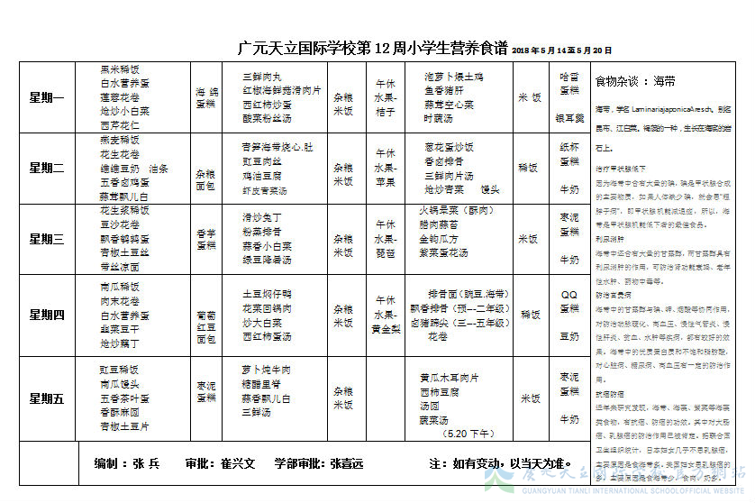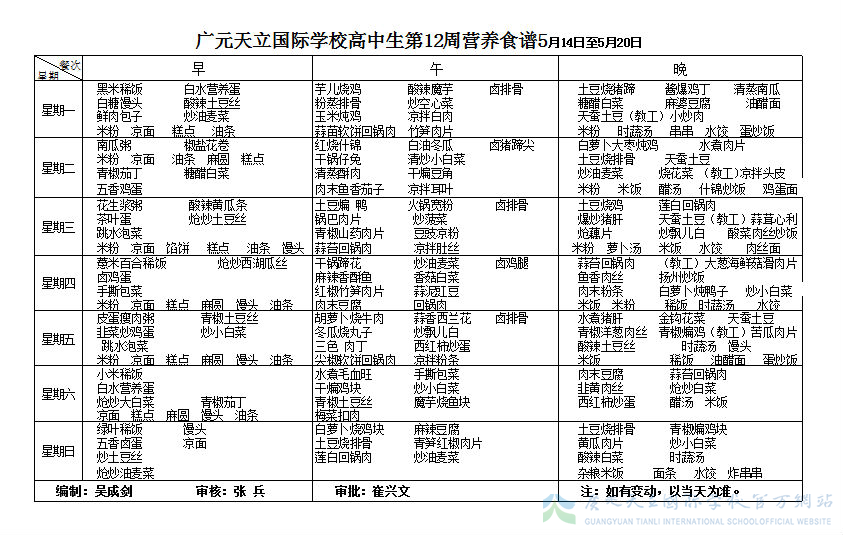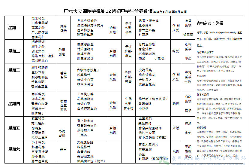 膳食中心第12周营养食谱