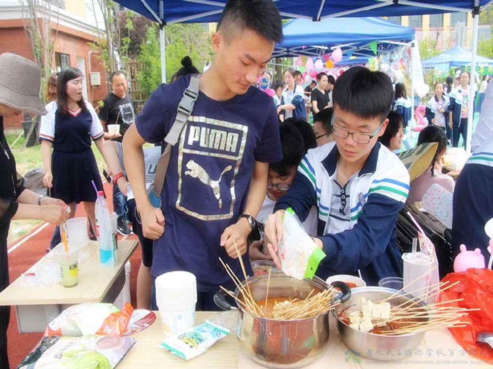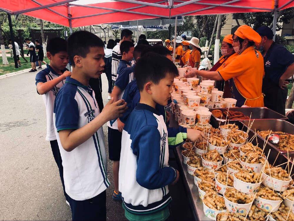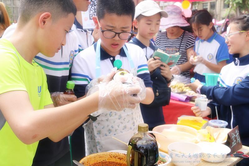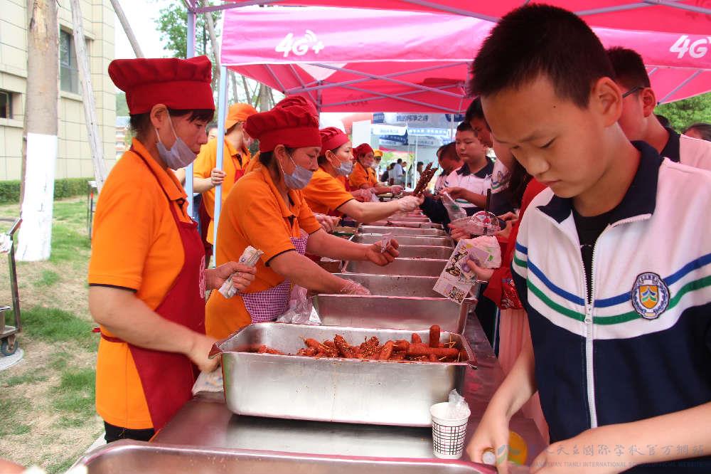 天立的美食是出了名的好吃。在美食一条街,食堂师傅们精心制作和提供的食品目不暇接、供不应求,总是能最大程度地激发路过者的味蕾。蒜苔香肠炒饭、孜然鱿鱼串、烧烤大串串、飘香猪蹄尖、叫花排骨、卤水凤爪、卤水鹅掌、麻辣鸭脖、香酥鸡腿、绵阳米粉、酸辣粉、蒜泥凉面、农家豆花、肉夹馍、披萨、大葱鲜肉包……色香味形俱佳的特色小吃,令人垂涎欲滴。当各个店铺的商品渐渐销售一空,游园的奖票也已发放完毕,今天的活动也接近尾声。孩子们细数着今天的劳动所得,计算着本班“店铺”的盈亏,细细品味着自己用劳动和智慧换来的美食,愉悦的享受盖过了之前的辛劳和下午的疲惫,更让他们明白了“劳动创造财富”、“奋进的青春最美丽”、“幸福是奋斗出来的”人生哲理。晚上六点,带着满足与不舍散场,同学们期待着明年的理财节再次火热来袭!