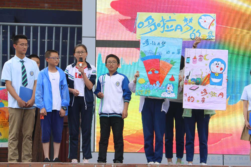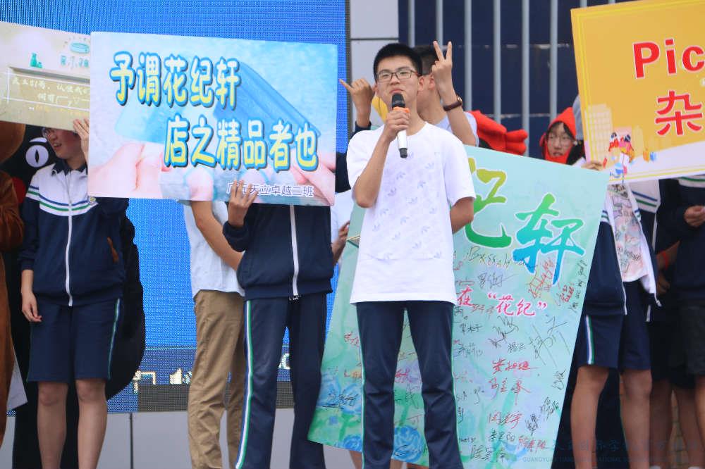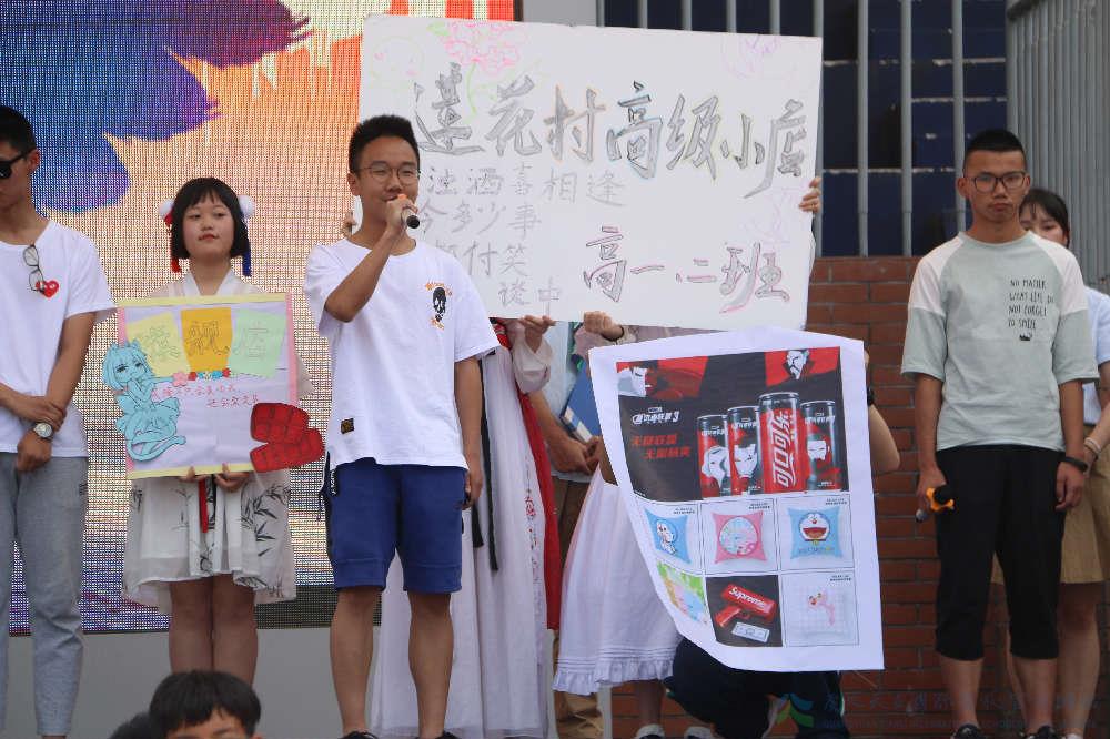 买卖好不好,全靠如何“炒”。小商品正式开卖前,初中预备年级、初一年级、初二年级、高一年级、高二年级共40个班分为四组依次登台进行了店铺集中展示,并喊出各自的广告词。随着一幅幅妙趣横生、新颖别致的班级广告牌闪亮登场,现场顿时沸腾万分。各班别具一格的店铺名和广告形式让大家看到了天立学子特有的想象力和非一般的创意。各式各样、各具特色的店招,看得人眼花缭乱!花样百出的宣传口号,喊得是震天的响!