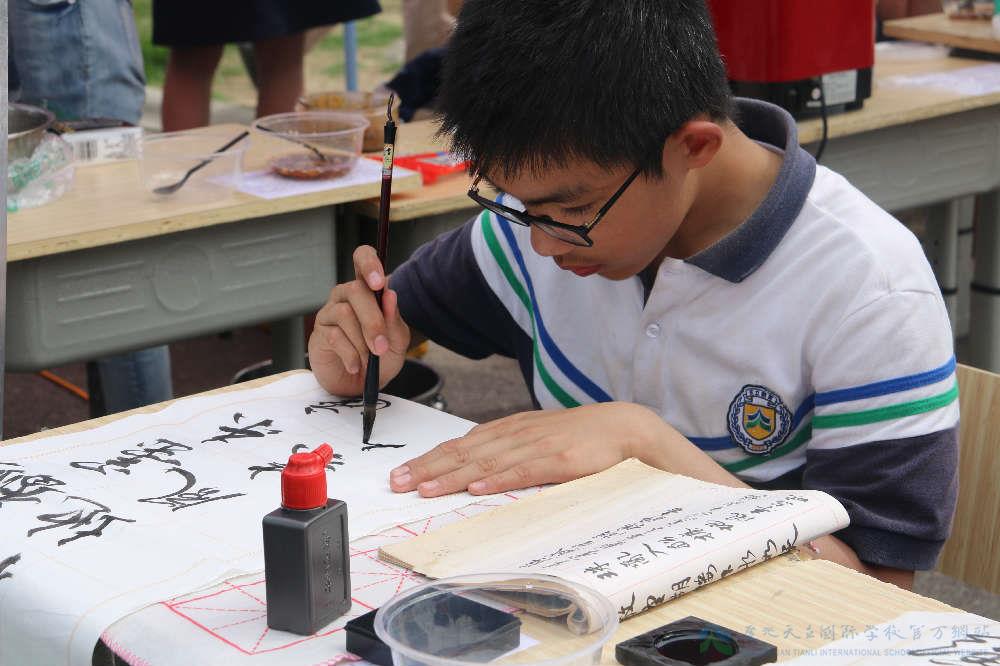 软硬书法,国之精华;今日小选手,未来书法家!只见书法比赛区,各班选派的选手们文房四宝齐上阵,凝神屏气,悬腕挥毫,笔走龙蛇,风格迥异,各具风采。不出一会儿,一幅幅作品已巧然形成,或清秀、或端庄、或豪放、或细描,行云流水,挥洒自如。连连的赞叹声彰显着天立学子深厚的文化功底,体现了学子们对根深蒂固的中国传统文化的深刻认同和倾情以赴。