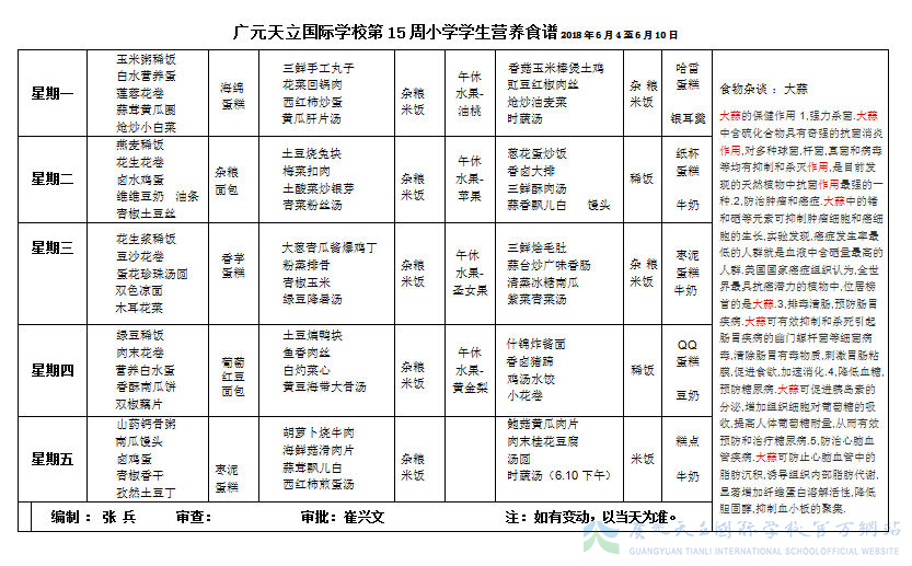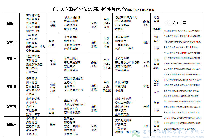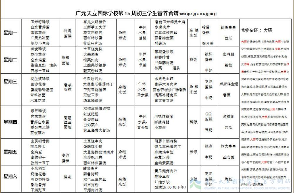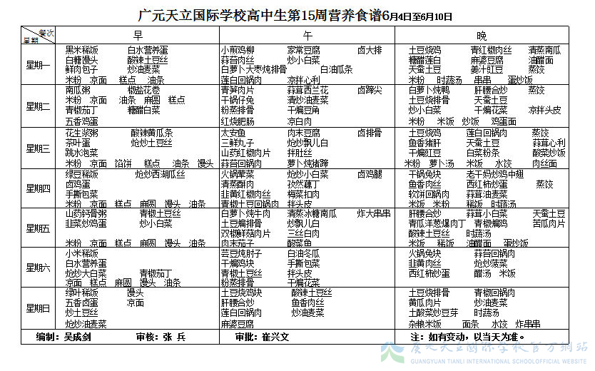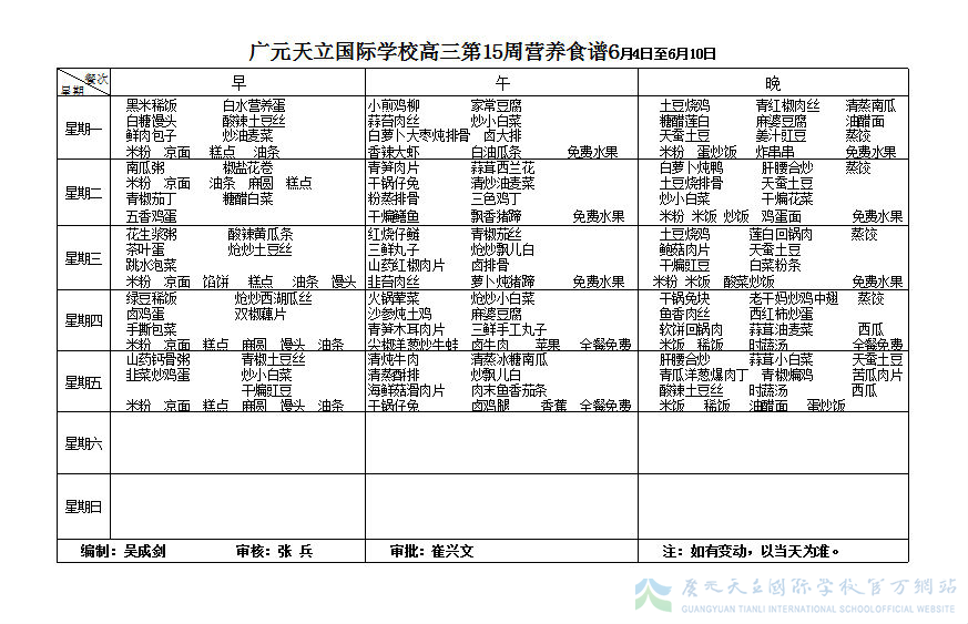 膳食中心第15周菜谱