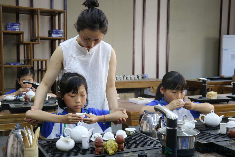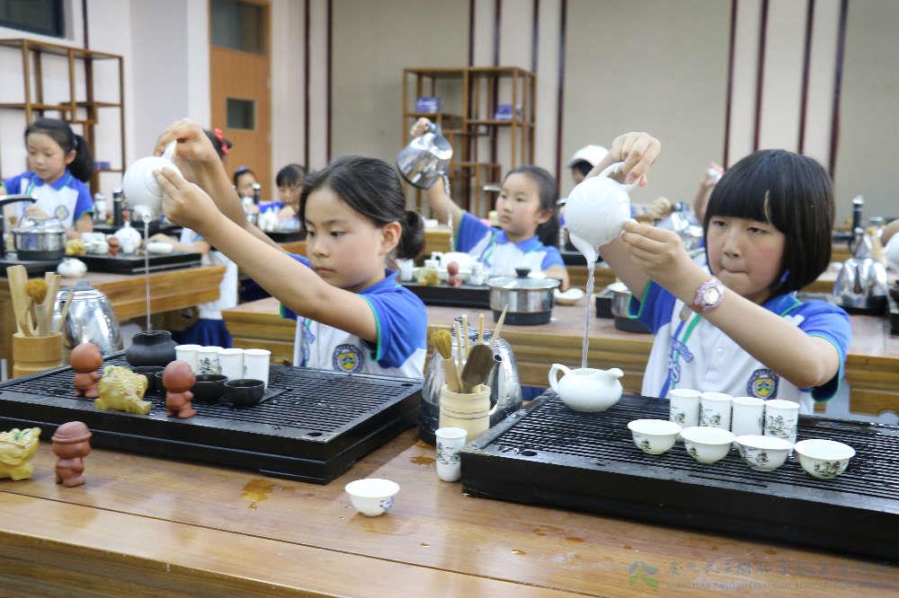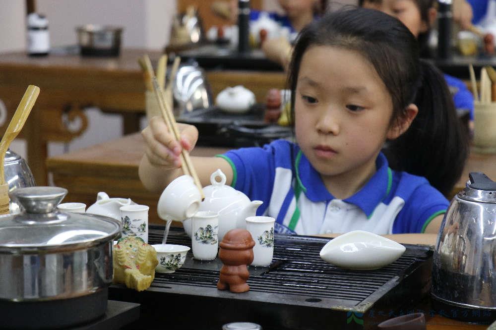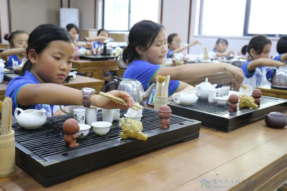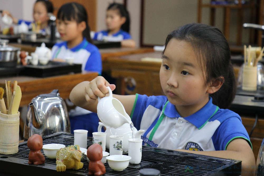 茶艺是一种文化。茶艺在中国优秀文化的基础上又广泛吸收和借鉴了其它艺术形式,并扩展到文学、艺术等领域,形成了具有浓厚民族特色的中国茶文化。茶艺,它渲染了茶性清纯、幽雅、质朴的气质,与此同时也浸润着品茶人的心性和气度。不同的风格的茶艺,不同性情的品茶人,甘苦回味,百味人生品鉴,而茶艺老师将心理学融汇于杯水之中,在《茶经》的研习中,培养天立学子的形象礼仪、自我觉察和专注力——一杯清茶,其味愈浓。