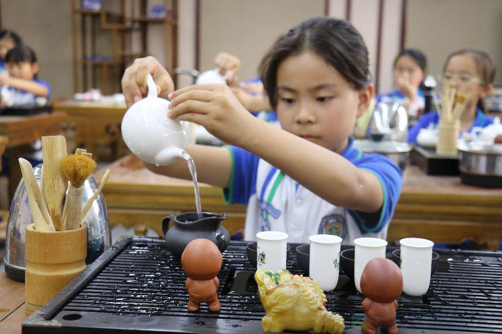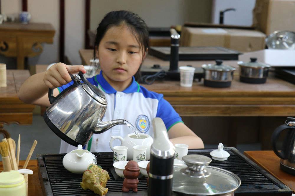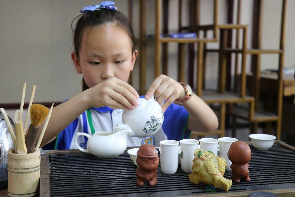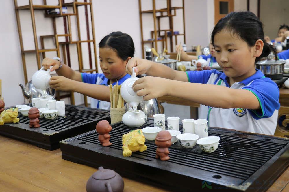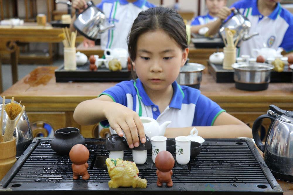 茶艺是一种文化。茶艺在中国优秀文化的基础上又广泛吸收和借鉴了其它艺术形式,并扩展到文学、艺术等领域,形成了具有浓厚民族特色的中国茶文化。茶艺,它渲染了茶性清纯、幽雅、质朴的气质,与此同时也浸润着品茶人的心性和气度。不同的风格的茶艺,不同性情的品茶人,甘苦回味,百味人生品鉴,而茶艺老师将心理学融汇于杯水之中,在《茶经》的研习中,培养天立学子的形象礼仪、自我觉察和专注力——一杯清茶,其味愈浓。