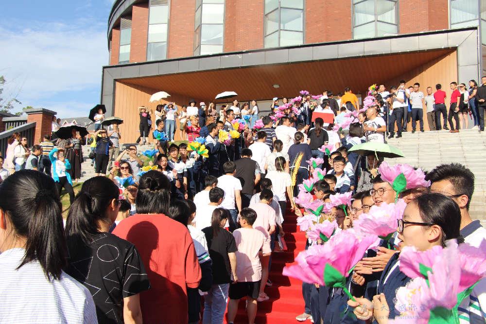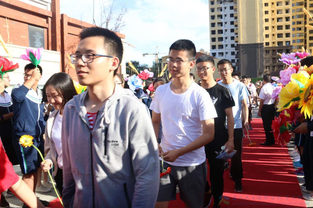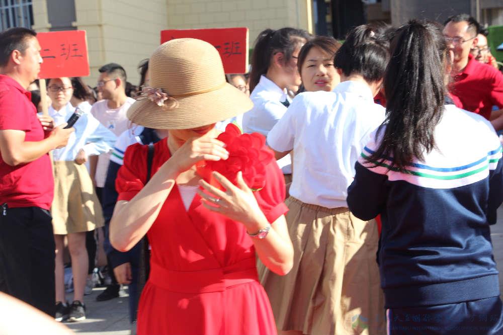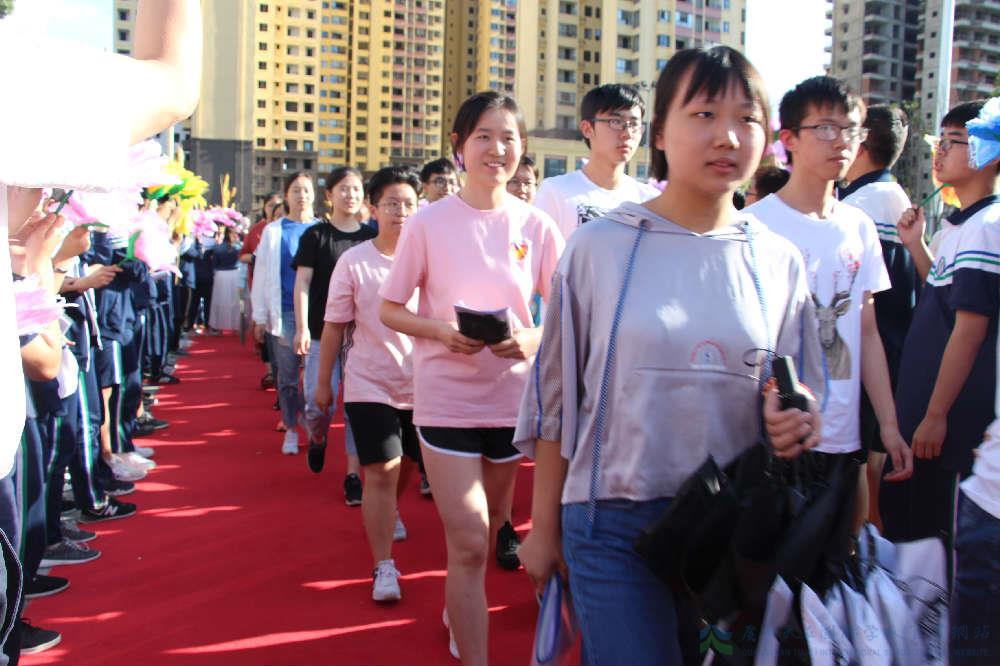 他们是天立首届教师,抛却往日的荣耀,全新出发,守护着这方热土,倾注了满腔赤诚。此刻,站在红毯上的高三教师是坦然的,他们的笑容那么自然纯粹。他们是天立首届学子,如今自考场而来,卸下三年沉重的担子,洒脱而归。