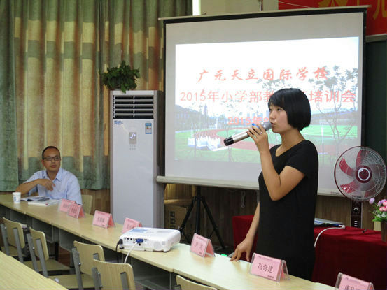 结束了紧罗密布的广元天立国际学校全体教职工首届培训,紧跟着分学部磨课环节。今天小学部开展了教师们的教学经验和案例分析的心得交流,老师们各抒己见,每个人的发言各不相同,每个人的风格各异,但是在俸校的领导下,我们像一支即将远征的队伍一样团结一致,齐心协力,为了同一个心中美好的小学部建言献策。