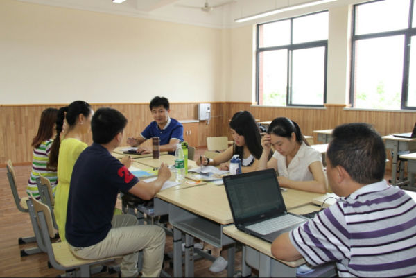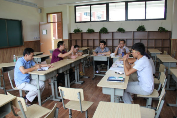 双语组由韩顶清老师负责,付老师及王老师协助,杨敏等三位新大生共同参与。讨论会上,凭着自己多年执教的丰富经验,付老师首先就上课模式做出了自己分理解与分析。从双语的共通性质出发,付老师分别从课前三分钟演讲、早晚自习、书写等方面对课程提出了自己的设想,并分析了几种假摄的利弊。杨晨老师继续以自己的经历,为部分课程设计提出了宝贵的意见,如:课前三分钟的演讲以主题式开展,锻炼学生敢于表达,善于表达的能力。最后,韩老师总结了两位老师的建议,并将其细致化,以点线面的形式对其进行了规划。“严禁散打”是他对讲课形式的基本要求,课件或是书面材料是必备品,只有做好充分准备,方可登台授课。此外,针对广元本地学生双语较差的普遍现象,韩老师发表了自己的意见,并提出了相应的对策。一场意义非凡的讨论,给予了几位新大生无限启发。此外,文综组、理科组及艺体组,分别在组长的带领下对今后的课程参与进行了设想,艺体组还对全校艺体老师的工作安排及制度要求分别做出了具体说明。