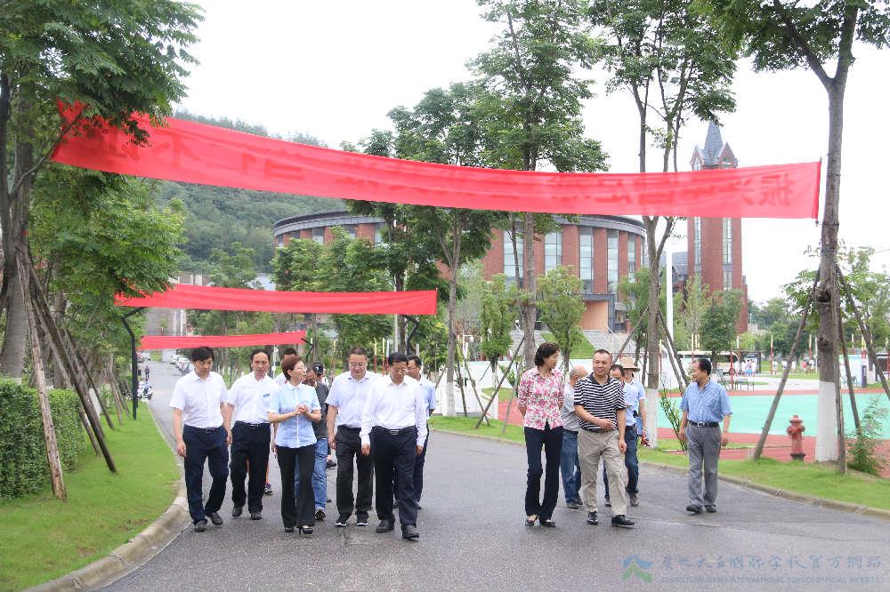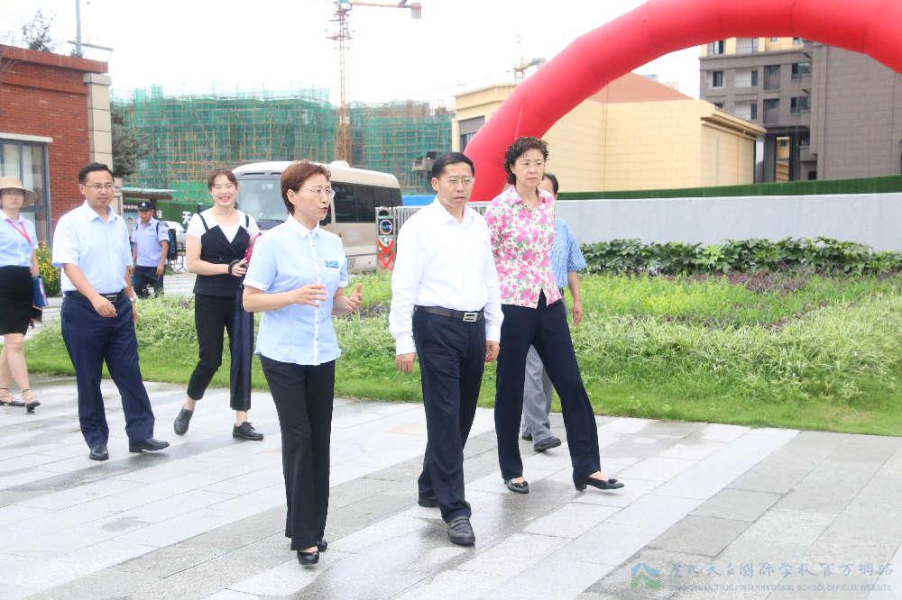 高中部校长范玉钦、初中部校长杨邦卿陪同参观视察。