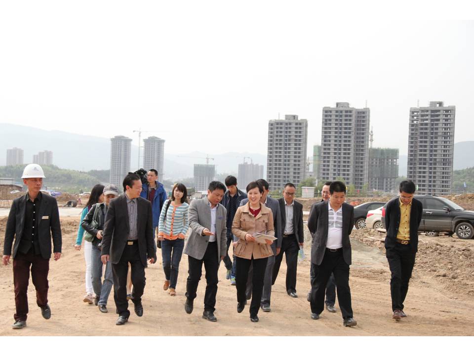 4月14日上午,广元市委宣传部部长王华蓉莅临我校建设工地视察工程项目推进情况。在热火朝天的工地现场,王华蓉部长详细询问了目前工程的进展情况和进度安排。我校黄永贵总校长就目前学校招生、招聘和工程进展及进度计划向王部长作了全面汇报。王华蓉部长对目前的工程进度和我校筹备工作表示满意。同时,她要求建设方和学校筹备处一定要统筹安排、科学指挥、安全施工、高效运作,又好又快的推进工程项目建设和各项筹备工作,确保6月30日前工程全面竣工并投入使用,确保9月份如期顺利开学。王部长还就目前建设方和筹备处需要市委市政府协调解决的问题作了现场办公和安排部署。广元市教育局局长杨松林陪同视察。