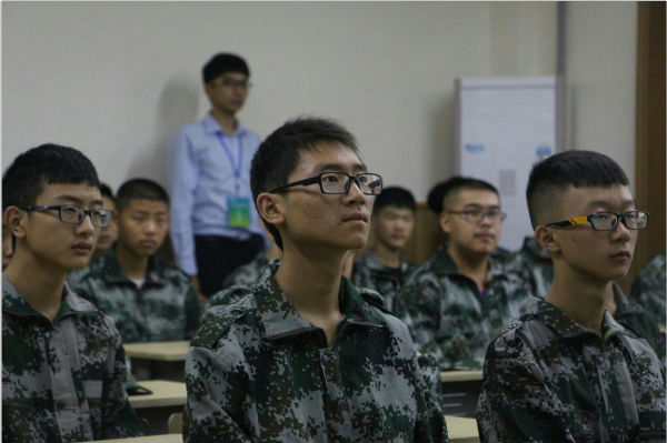 17日上午,早训时间,各连队迎来了自己的教官,这标志着此次军训的正式开始。由于天气不适,军训开营仪式暂时延期,但训练照常开展,仅仅将阵地由操场转向了教室。在各连队学员面前,教官们尽情展现着自己的军人素养,敦促所有学员遵守纪律,以一个军人的准则严格要求自己。窗外阴雨连绵不断,室内训练有声有色,每一位学员都尽情展示着自己的青春风采,以满腔热血来宣告自己对军训的热情和态度。午休之后,训练场地改向艺体楼室内球场。因为场地的绰绰有余,训练不再局限于前后左右转身,跨列、敬礼、齐步走等基本训练都相继开展,教官细心,学员积极,每一个动作都能完美展现,相信他们在接下来的常规训练中,会取得傲人的成绩。晚饭过后,学校为整个中学部开展了两场讲座,各连队在教室里分别聆听了李万良老师和陈羽老师关于德育及语文学习的分享,获益匪浅。