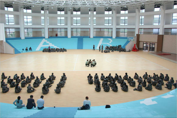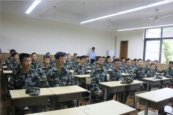 17日上午,早训时间,各连队迎来了自己的教官,这标志着此次军训的正式开始。由于天气不适,军训开营仪式暂时延期,但训练照常开展,仅仅将阵地由操场转向了教室。在各连队学员面前,教官们尽情展现着自己的军人素养,敦促所有学员遵守纪律,以一个军人的准则严格要求自己。窗外阴雨连绵不断,室内训练有声有色,每一位学员都尽情展示着自己的青春风采,以满腔热血来宣告自己对军训的热情和态度。午休之后,训练场地改向艺体楼室内球场。因为场地的绰绰有余,训练不再局限于前后左右转身,跨列、敬礼、齐步走等基本训练都相继开展,教官细心,学员积极,每一个动作都能完美展现,相信他们在接下来的常规训练中,会取得傲人的成绩。晚饭过后,学校为整个中学部开展了两场讲座,各连队在教室里分别聆听了李万良老师和陈羽老师关于德育及语文学习的分享,获益匪浅。