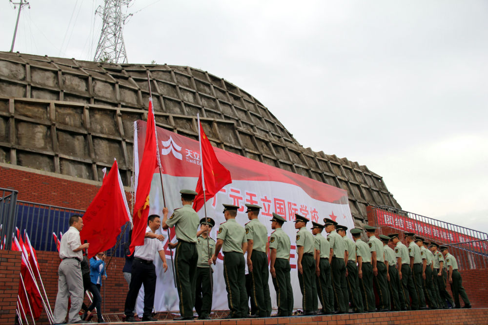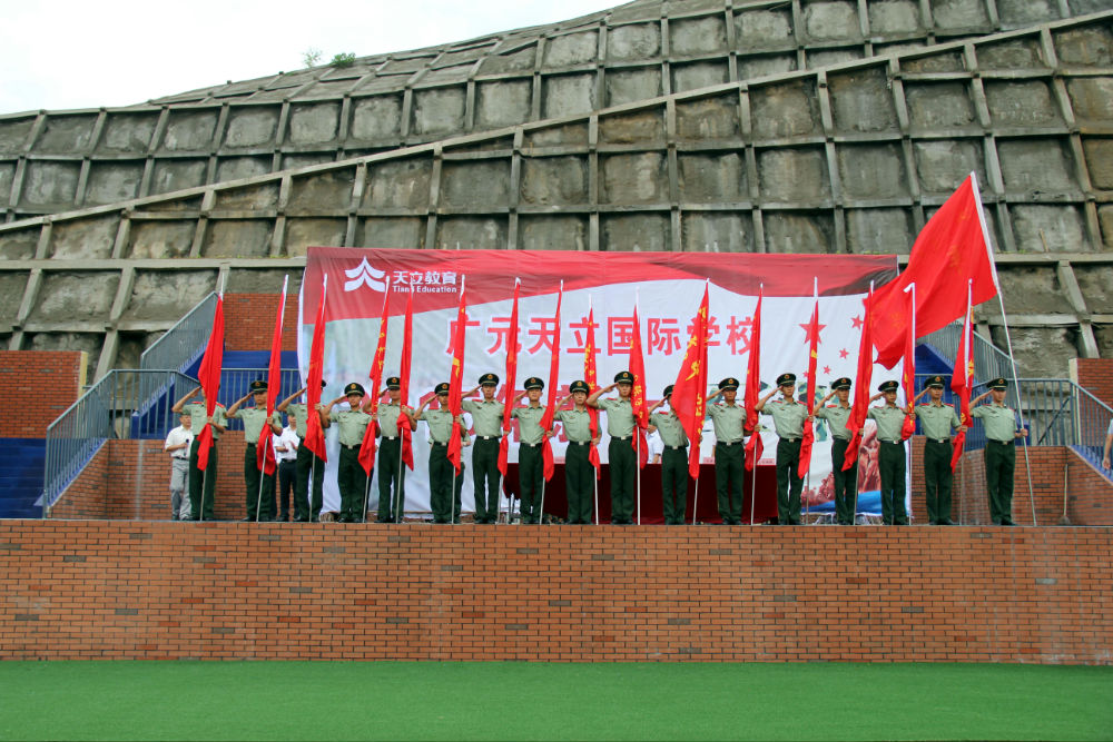 广元天立国际学校领导及熊参谋长授连旗,各连教官接旗。
