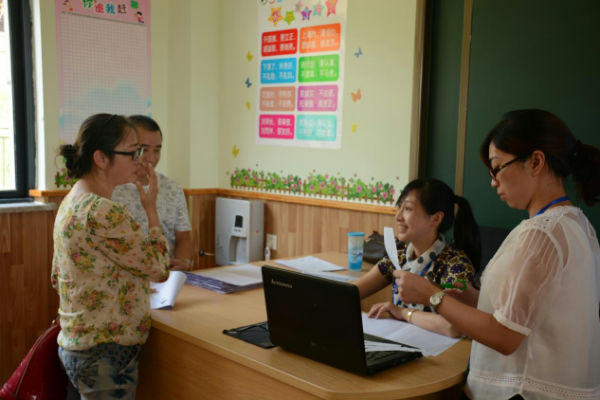 刚到12:00,小学部的全体老师们就已经在校门、路口、教室等工作点准备就绪。随着家长和孩子们陆续进入学校,老师们紧张而有序地忙碌起来,登记信息、签订安全协议和分配寝室……分工明确,有条不紊。所有的新生家长办理完入学手续,在反复的叮嘱后,把孩子放心地留在学校。