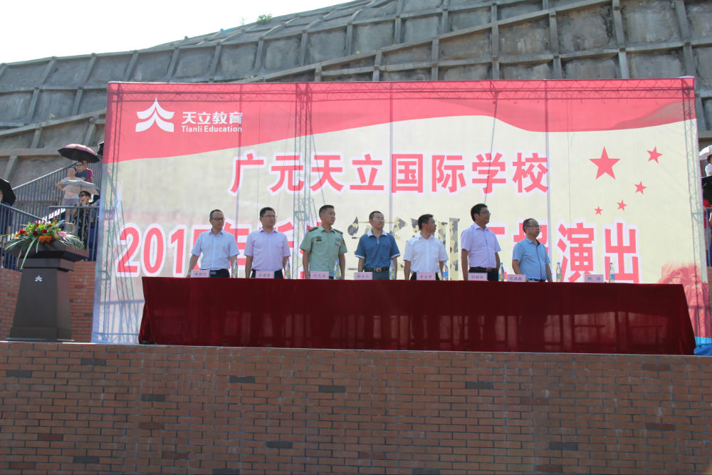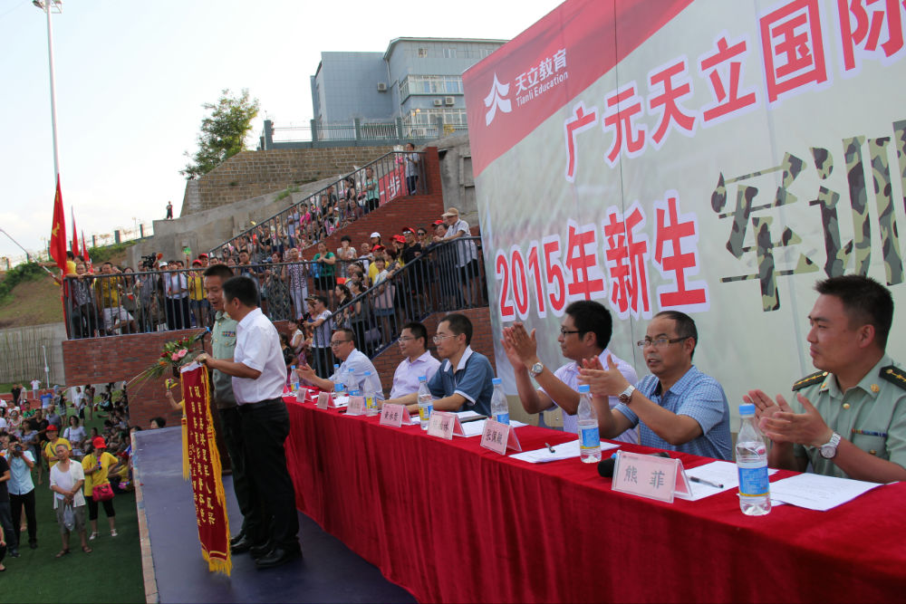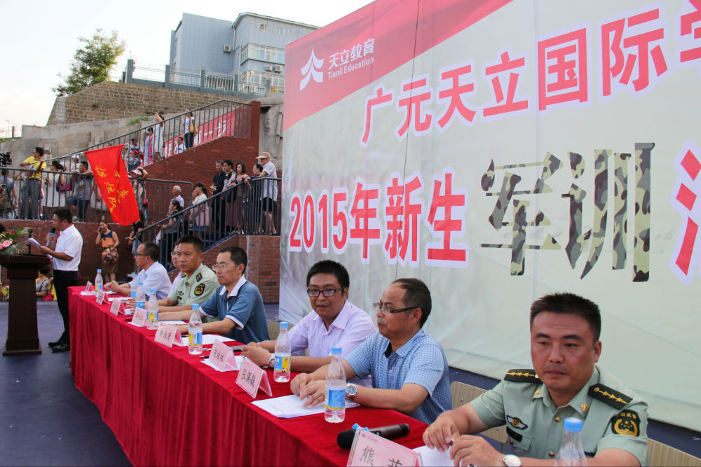 八月利州,惠风和畅,碧荷飘香。8月23日,秋阳高照、青山环抱下的广元天立国际学校,国旗高扬,军歌嘹亮。是日下午,广元天立2015年秋季中学部首届新生军训汇报表演暨总结表彰大会在中学运动场隆重举行,为紧张、充实的七天军训画上圆满句点。武警广元支队参谋长向天兵、广元市教育局副局长赖永红等领导应邀出席会议并就座主席台。广元天立中学部全体师生及部分学生家长倾情演绎和见证了这一具有里程碑意义和珍藏价值的奠基性历史事件。