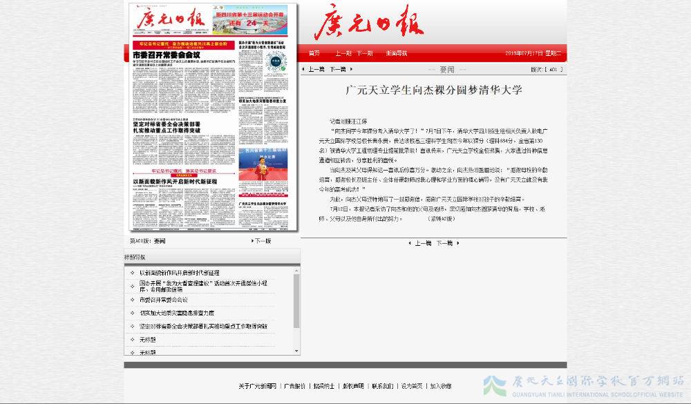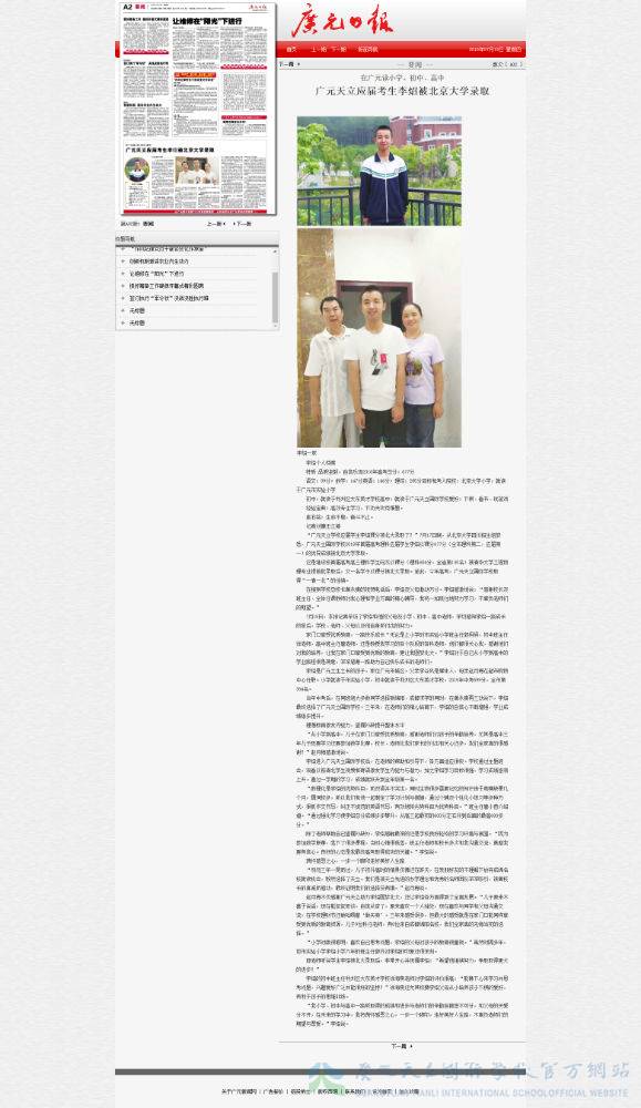 ★低进高出创奇迹:在首届高一学生入口成绩整体不理想(2015年广元市中考前600名绝大多数优生纷纷选择南下就读成绵名校)和首届补习班学生仅18人的情况下,我校学生低进高出、卓越发展,缔创“让优秀者更优秀,让平凡者不平凡”的天立奇迹!