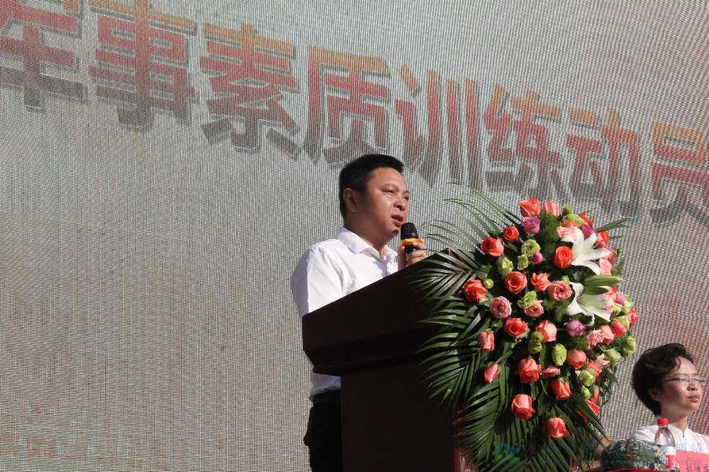 黄永贵总校长作军事素质训练动员讲话。他对近600名初一新同学的加盟表示热烈的欢迎,对负责此次军训的教官表示崇高的敬意。他说,军训是初中生活的第一堂课,希望每一位新同学能在军训这一课中学到军人的意志、军人的纪律、军人的作风、军人的气质,在今后的学习生活中始终以军人的最高标准要求自己。最后,黄校长预祝本次军训取得圆满成功!