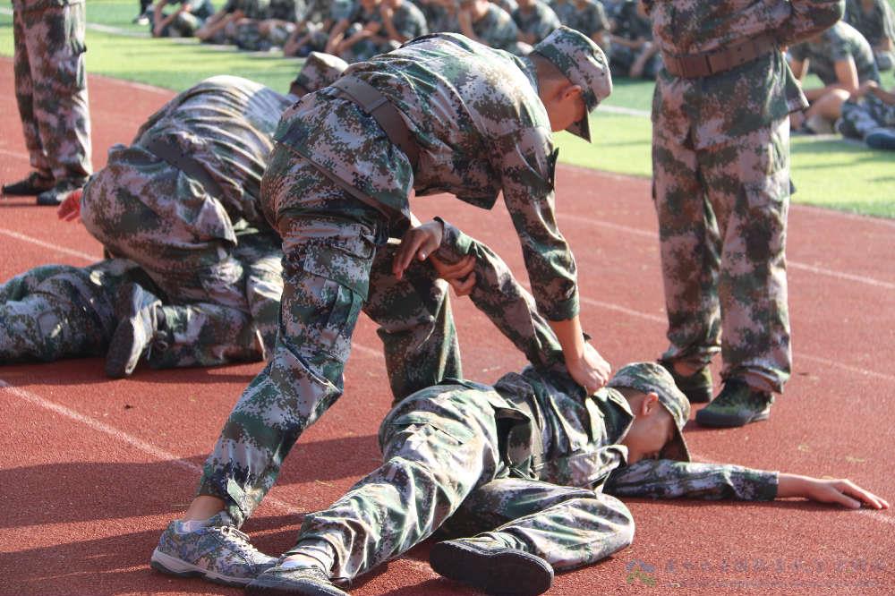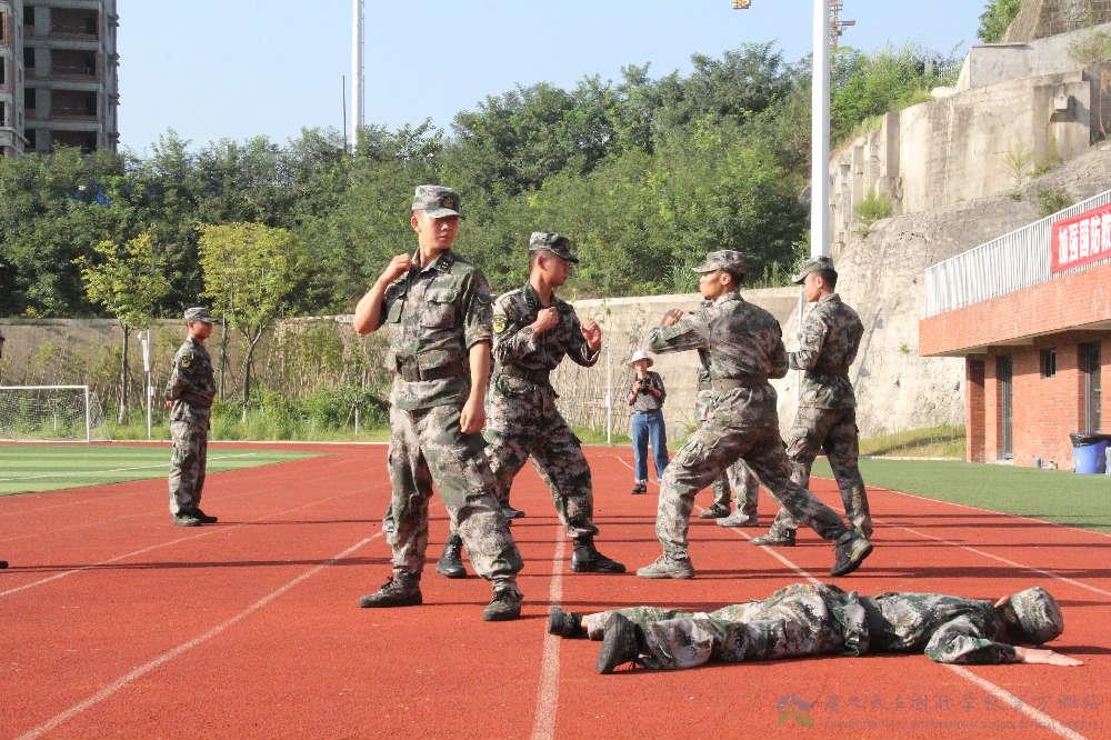 此次军训的教官们也在开幕式上展示了自己的绝活。行进立定整齐划一、军体拳虎虎生威、格斗术威风凛凛……精彩的表演获得了同学们的阵阵掌声和欢呼。