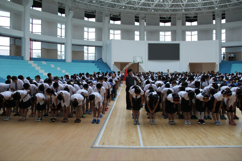 下午5点,活动在庄严的奏唱国歌仪式中拉开华美大幕。学生礼仪队手捧鲜花向全体老师送上真挚祝福,鞠躬感谢老师们的辛勤教导。五年级同学们带来的诗朗诵 《我敬爱的老师》,让老师们深感职业光荣和自身肩上责任的重大与使命的崇高,激发了大家在广元天立这方充满希望的沃土筑梦、圆梦,为祖国培育参天栋梁的壮志豪情。紧接着,黄永贵总校长致嘱托词,庄重代表天立国际学校全体学生家长将各位学生交付给各位老师,并敬嘱托礼。全体同学向老师行尊师礼、拜师礼,并庄严宣誓:“我们相聚在女皇故里,我们是幸福的天立学子,我誓愿尊师爱校,乐学善思;崇尚科学,弘扬人文……以富强祖国为己任,以奉献社会为宗旨”!同学们的铮铮誓言响彻艺体馆的每一个角落。“我们相聚在女皇故里,我们是幸福的天立教师,我们将忠诚教育事业,践行天立文化,弘扬大雁精神……让每个学生都能健康成长,让每个学生都能适应未来”!老师们的激情宣誓,让我们看到了天立教师独善其身、兼济天下的殷殷教育情怀,更让我们领略到了广元天立创业团队众志成城、拼搏奋斗、甘于奉献的良好精神气质。活动在同学们雷鸣般的掌声中圆满结束。