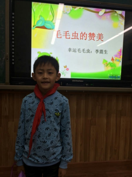 今天是我们毛毛虫班小毛毛虫李震生同学的幸运赞美日,说幸运,是因为他的名字是从40个同学当中随机抽出来的,他会在今天的暮省时间得到大家的赞美。暮省时间到了,震生同学在老师的邀请下,在同学们羡慕的目光中,开心又略带紧张的来到了讲台上,享受大家的赞美。