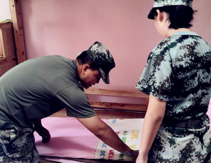 从部队到学校,从“士兵”到“教官”,他们的角色发生了变化、称谓发生了变化。于他们而言,他们的生活好像变了,却又没变。每天依旧早早地起床,整理内务、训练、检阅……一切如常,然而不同的是,他们每天面临的是40余名稚气未脱的初一新生。他们虽然年轻,却有着不一般的意志和毅力,军训是他们展现自我,教化学生的大讲堂。