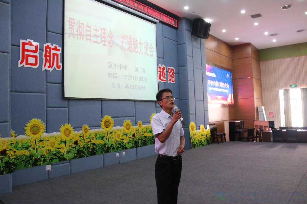 吴浩老师担任班主任工作8年来,在该校推行的自主管理理念的指导下,逐步形成了:民主管理、文化熏陶、活动育人的带班风格,尤其善于抓住各种教育契机开展德育活动,比如以百里远足、家长会、百日誓师大会、大型活动、重大节日、突发事件等作为突破口,召开主题班会和微班会,教育学生。报告中,吴浩老师通过大量真实的案例就什么是主题班会以及召开主题班会的技巧做了详细的阐述。他说,要开好主题班会主要应抓住“抢抓契机,精选主题”、“放权学生,巧设方案”、“自集素材,丰富内涵”、“源于学生,创新形式”和“自主延伸,注重实效”六个方面的技巧。整个报告过程中听课老师热情高涨,掌声此起彼伏。