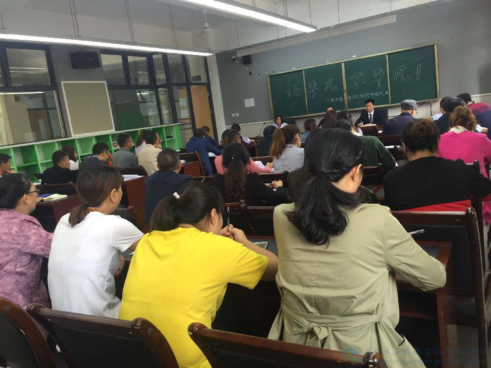 为进一步规范学生行为,促进学生健康成长,9月17日上午,高中部召开了本学期第二次全体班主任、生活老师培训会议——“让平凡不平凡”。高中部校长范玉钦、副校长兼学生发展部主任任文睿、学校安办主任兼学生发展部副主任邓周元、学生发展部副主任兼学部团委书记王晨以及高中部各年级班主任、副班主任、生活老师共计近35人出席了会议。大会由副校长任文睿主持。