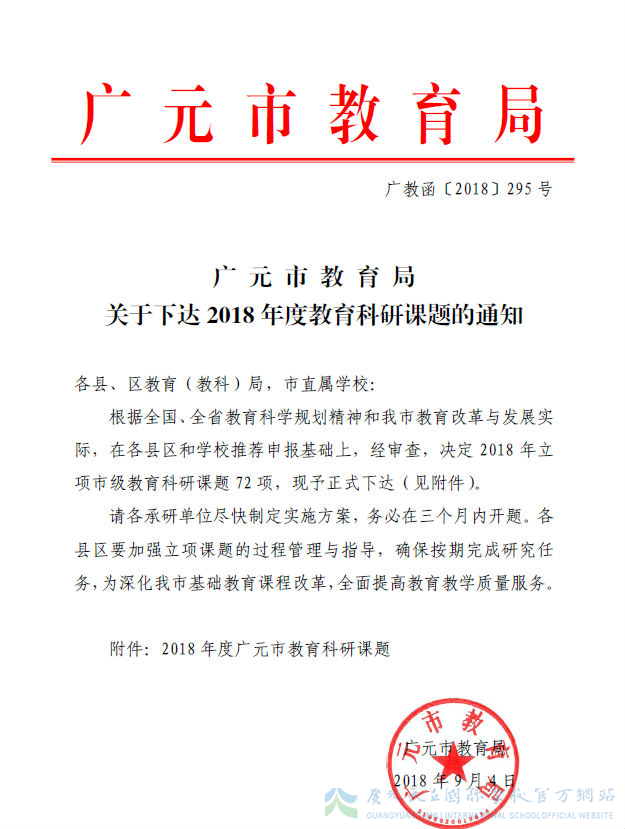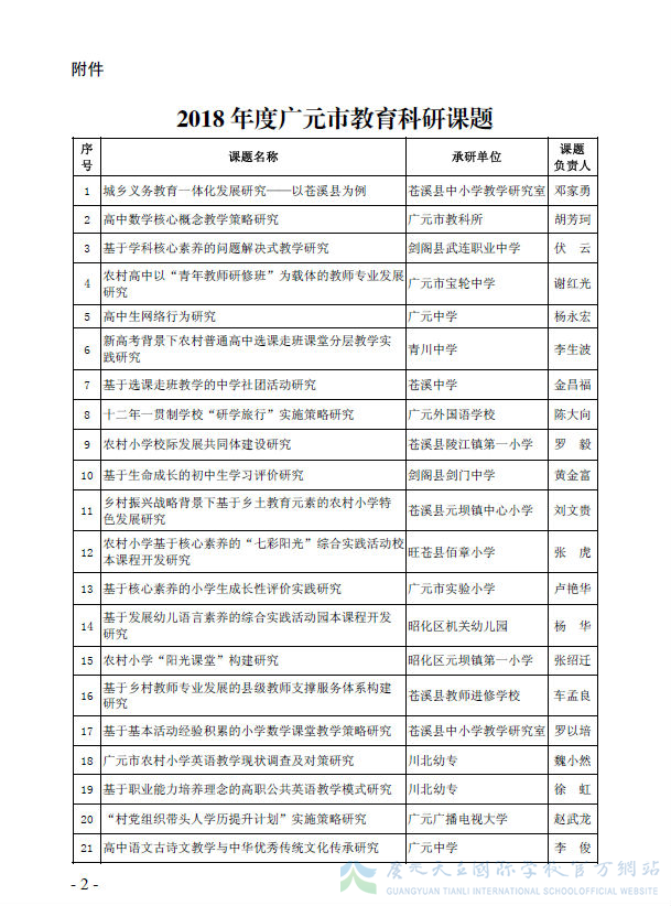 我校科研课题被列为2018年度广元市市级教育科研立项课题