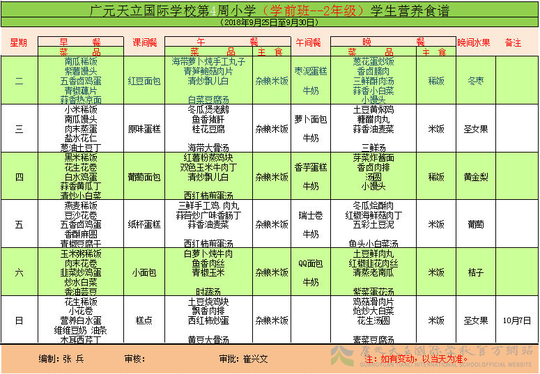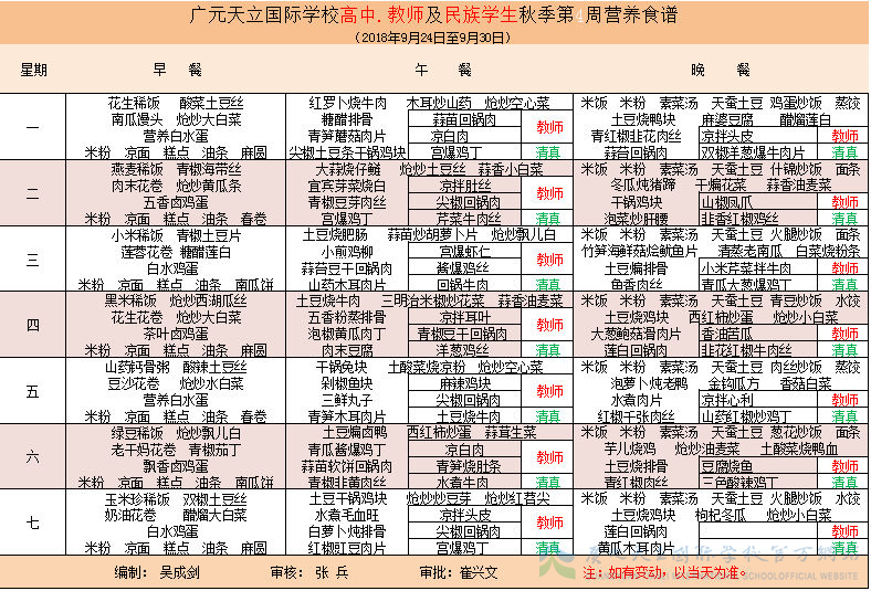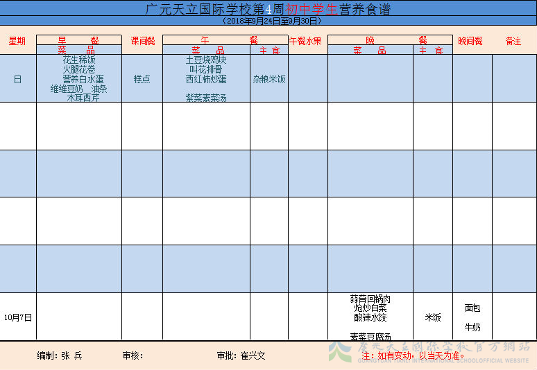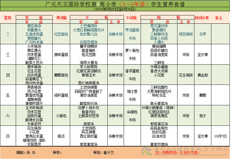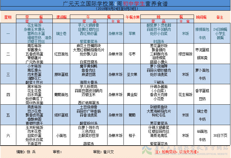 膳食中心第4周菜谱